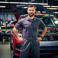 confident handsome man automotive service manager at work on blurred background car dealership mechanic auto repair technician professional smile friendly confident trustworthy reliable honest expert experience knowledge skill customer service satisfaction quality automotive industry leader leader team management success motivation inspirationImagine Buddy