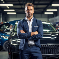 confident handsome man automotive compliance safety officer work blurred background professional business success leadership responsibility trust integrity dedicated motivated experienced skilled knowledgeable expert passionate safety first quality performance compliance regulations standardsImagine Buddy