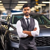 automotive safety compliance specialist work indian man confident handsome blurred background professional engineer technician car vehicle factory office safety standards regulations safety testing quality control inspection audit certificationImagine Buddy