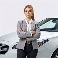 Confident beautiful woman automotive customer service representatives at work on isolated white background