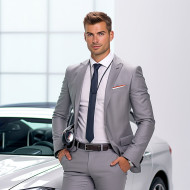 automotive customer service representative man confident handsome work white background employee professional smiling friendly helpful knowledgeable experienced trusted advisor consultant expert mechanic technician salesperson sales finance insurance service repair partsImagine Buddy