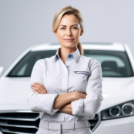 Confident beautiful woman automotive training instructor at work on isolated white background