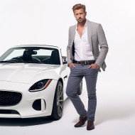 Confident handsome man automotive marketing and advertising specialist at work on white background