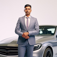 Confident handsome indian man automotive human resources manager at work on isolated white background