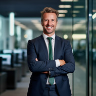 banking finance investment officer chief handsome man smiling friendly work business professional blurred background office desk computer laptop phone documents papers reports charts graphs meeting presentation team leader success achievement growth performance investment strategy portfolio wealth management financial advisor consultant professional services expertImagine Buddy