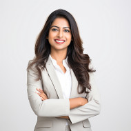 Friendly smiling beautiful indian woman banking and finance hr manager at work on blured background