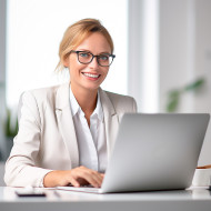 Friendly smiling beautiful woman banking and finance chief operating officer at work on blured background