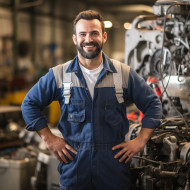 industrial models mechanic man smiling friendly handsome work blurred background uniform tools car engine oil grease dirty overalls cap toolbox repair fix smile happy professional skilled experienced trustworthy reliable honest friendly smile happy professional skilled experienced trustworthy reliable honest automotiveImagine Buddy