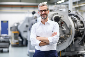 industrial models engineer aerospace factory work blurred background man friendly smiling handsome male employee professional worker uniform hardhat tools machine parts assembly production manufacturing aircraft spacecraft rocket satellite space technology innovation engineering career job business industry people human face portrait smile happy cheerful confident successful positiveImagine Buddy