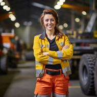 Smiling woman worker in heavy industry on blurred background