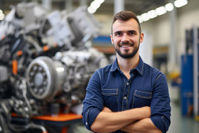 industrial models mechanical engineer man friendly smiling handsome work blurred background engineer smile industry people portrait happy male professional business success young adult career technology machine factory workplace job worker hard work motivation ambition inspirationImagine Buddy