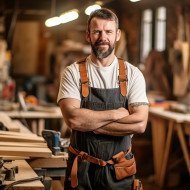 Skilled carpenter working with confidence on blured background