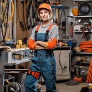industrial models confident plumber woman machinist man work blurred background tools toolbox uniform hardhat pipe wrench machine metal factory industrial strength power female male equality diversity job career employmentImagine Buddy