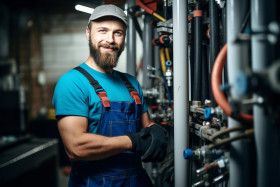 industrial models plumber woman confident work blurred background tools toolbox pipe wrench faucet sink toilet shower plumbing repair fix install maintain service professional skilled experienced reliable trustworthy dependable hardworking determined strong independent empowered femaleImagine Buddy