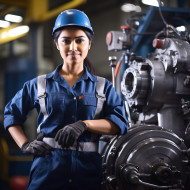 industrial models woman machinist indian confident work blurred background factory machine tools metal engineer technician industry manufacturing industrial manufacturing production labor worker workplace employment business job career success power empowerment inspirationImagine Buddy