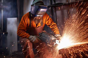 industrial models welder confident work blurred background safety gear metal sparks helmet gloves goggles apron factory industrial manufacturing engineering skilled labor male worker occupation employment job livelihood living profession career trade craft skill expertise experience knowledge technique dedication passion commitment excellence quality satisfaction achievement accomplishment pride successImagine Buddy