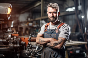 industrial models confident man tool die maker work blurred background factory manufacturing metal machine engineering precision accuracy skill experience dedication passion hard work safety quality product customer satisfaction innovation technology progress future bright success success story inspiration role model motivation career business industry leaderImagine Buddy