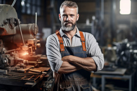 industrial models confident man tool die maker work blurred background factory manufacturing metal machine engineering precision accuracy skill experience dedication passion hard work safety quality product customer satisfaction innovation technology progress future bright success success story inspiration role model motivation career business industry leaderImagine Buddy