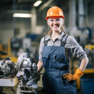 industrial models woman tool and die maker manufacturing industry work smiling friendly blurred background factory machine metal tools dies steel metalworking precision engineering skill expertise career profession trade apprenticeship education opportunity success female inspiration motivationImagine Buddy