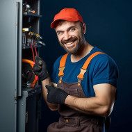 industrial models plumber man friendly smiling work blurred background tools pipes wrench toolbox uniform hat overalls boots belt service repair fix leak clog drain faucet toilet sink shower bathtub water pipe plumbing home maintenance professional reliable honest affordable emergencyImagine Buddy