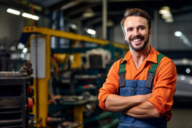 industrial models mechanic man friendly smiling work blurred background automobile car engine repair tools uniform overalls grease dirty hands professional skilled experienced reliable trustworthy honest affordable efficient quick quality service customer satisfaction satisfaction guaranteed happy safe reliable transportation essential important everyday hero hardworking dedicated committed passionate love cars engines machines fixing helping people communityImagine Buddy