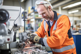 industrial models man friendly smiling work blurred background factory industrial metal engineering manufacturing precision machinery metalworking automotive aerospace electronics medical appliances tools dies molds jigs fixturesImagine Buddy