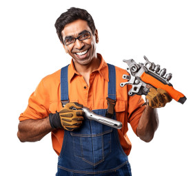 worker craftsman technician engineer manufacturing industry skilled professional adult male portrait headshot friendly smiling happy confident ethnic indian asian ethnicity diversity occupation uniform tool die maker isolated white backgroundImagine Buddy