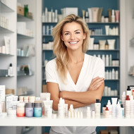 woman beautiful friendly smiling sales representative beauty personal care product work blurred background happy helpful customer service smile friendly assistance professional confidence trust cosmetics skincare makeup haircare fragrance bath body lotion cream shampoo conditioner soap gel lotion moisturizerImagine Buddy