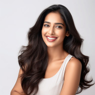 indian woman beauty personal care cosmetologist work white background friendly smiling beautiful female headshot portrait close up professional young adult makeup skincare hair salon spa wellness healthy glowing radiant confident happy joy positive smile teeth eyes face skinImagine Buddy