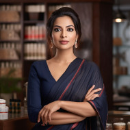 indian woman manager spa beauty personal care confident beautiful at work blurred background work woman portrait business female success professional leader entrepreneur smile happy confident indian woman work clothes makeupImagine Buddy