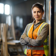 woman glazier confident work blurred_background glass window repair replace install female professional skilled trade construction industry tools equipment safety harness helmet glasses gloves ladder building house office commercial industrial residential exterior interior daylight outdoorsImagine Buddy