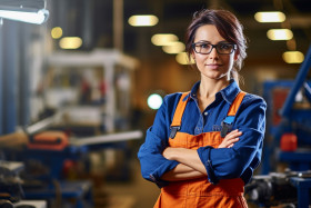 glazier woman confident work blurred background glass window construction repair female tools equipment professional skilled safety hard hat goggles gloves uniform ladder smiling happy success empowerment female empowerment women in construction women in trades role modelImagine Buddy