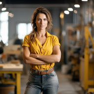 Woman mason confidently working on a blurred background