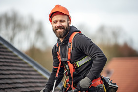 Roofer working on roof with confidence