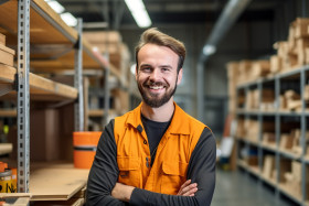 mason man smiling friendly working blurred background construction building tools bricks cement mortar trowel hard hat safety glasses gloves level plumb line hammer chisel saw ladder scaffold blueprint plans architecture engineer craftsman dedication professionalism pride satisfactionImagine Buddy