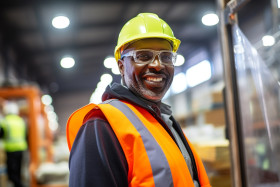 glazier man smiling friendly work blur background glass window cutter installer pane repair maintenance commercial residential home business building office door mirror storefront partition frame sash putty hardware tools equipment safety gloves goggles vest helmet uniform professional skilled experienced reliableImagine Buddy