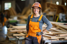 female construction worker friendly smiling blurred background safety vest hard hat tools equipment hard work female empowerment role model diversity inclusion breaking barriers equality inspiration motivation success strong powerful capable skilled professional determined resilientImagine Buddy