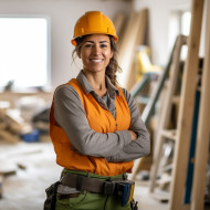 woman construction worker friendly smiling work blurred background hardhat vest tools building site safety female power strong independent diversity inclusion representation rolemodel inspiration motivation success femalepowerImagine Buddy