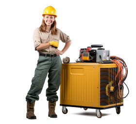 professional friendly smiling woman hvac technician smiling woman hvac technician woman hvac woman woman smiling technician smiling white background isolated people person portrait female worker blue collar service industry trade skilledImagine Buddy