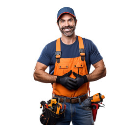 friendly smiling man electrician isolated white background electrical technician wire power light outlet switch panel circuit breaker fuse box conduit cable tools equipment job work service repair install maintain professional reliable experienced licensed insured affordable certified trusted localImagine Buddy