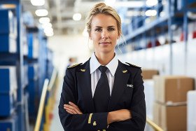 transportation models woman captain ship maritime nautical marine leadership authority command control navigation helm bridge uniform professional career success determination confidence strength empowerment blurred background focus work occupation profession industry transportation logistics travel adventureImagine Buddy