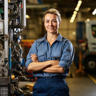 transportation models mechanic woman truck repair automotive skilled professional confident focused determined strong empowered female workplace garage tools machinery blurred background industry occupation career expertise competence knowledge skill auto repairwoman mechanician greasemonkey wrencher gearheadImagine Buddy