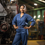 transportation models railroad transportation railway train conductor engineer female woman professional career workplace indoors uniform focused determined skilled capable technology control power leadership diversity representation india south asia ethnicity culture blurred background portraitImagine Buddy