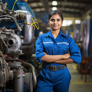 transportation models railroad transportation railway train conductor engineer female woman professional career workplace indoors uniform focused determined skilled capable technology control power leadership diversity representation india south asia ethnicity culture blurred background portraitImagine Buddy