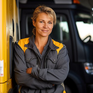 transportation models woman truck driver transportation logistics trucking female confidence profession career workplace steering wheel cab interior focused determined skilled professional haulage delivery freight transport road highway commute journey travel motion blur backgroundImagine Buddy