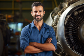 transportation models aviation airplane mechanic engineer maintenance repair technician professional expert skilled confident focused dedicated hardworking safety precision tools hangar workshop blurred background industry aerospace transportation career occupation uniform safety glasses expertise knowledge experience skill dedication passionImagine Buddy