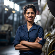 transportation models woman captain ship maritime marine nautical seafarer navigator helmsman officer uniform professional confident leader ethnicity indian asian ethnicity diversity inclusion workplace portrait smile friendly approachable cheerful happy positive blurred backgroundImagine Buddy