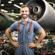 transportation models aviation mechanic aircraft maintenance repair engineer technician professional worker uniform safety tools equipment hangar airplane jet flight travel industry aerospace profession career skilled expertise precision dedication passion friendly smiling happy confident reliable trustworthy blurred backgroundImagine Buddy