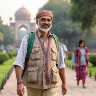 indian male tour guide confident work blurred background tourism travel destination india culture heritage history monuments architecture people places things to do see learn explore experience enjoy beautiful vibrant diverse fascinating intriguingImagine Buddy