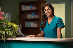 Indian receptionist working with a smile